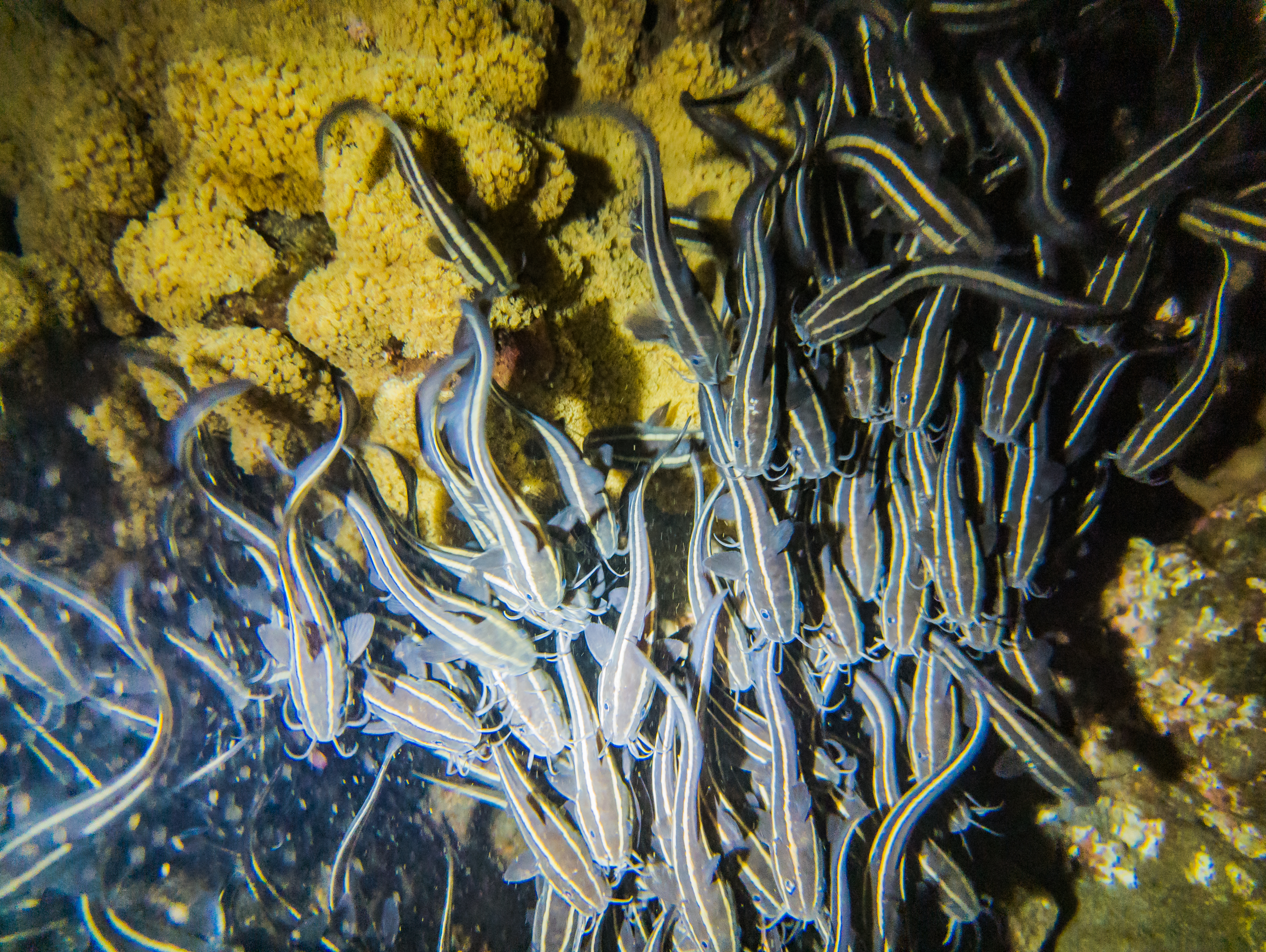 La beauté des Lataniers réside dans sa nature intacte et ses merveilles encore peu explorées par l'homme. C'est un endroit où vous pourrez découvrir les merveilles de l'océan et explorer ses innombrables espèces. Plonger aux Lataniers surtout la nuit, sera une expérience inoubliable qui vous fera apprécier encore plus la beauté et la diversité du monde sous-marin de La Réunion. Quelques splendides photos de la plongée de nuit du 10 mars 2023.